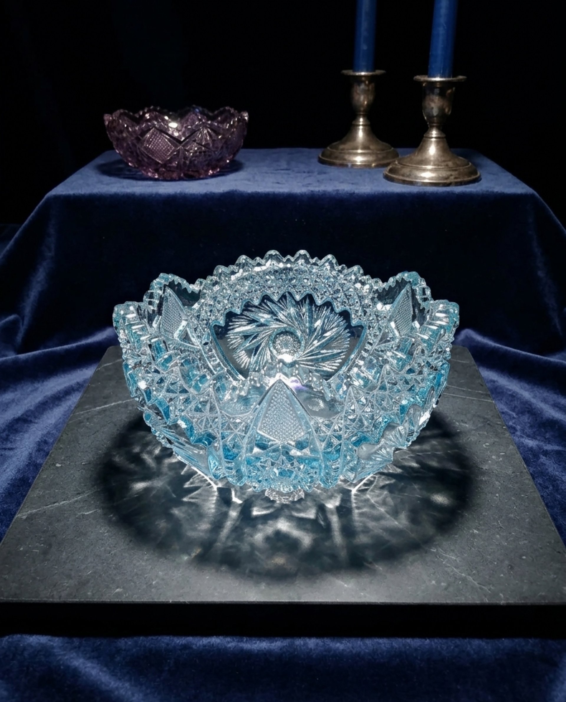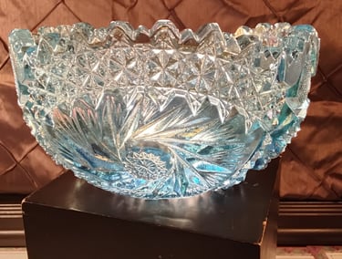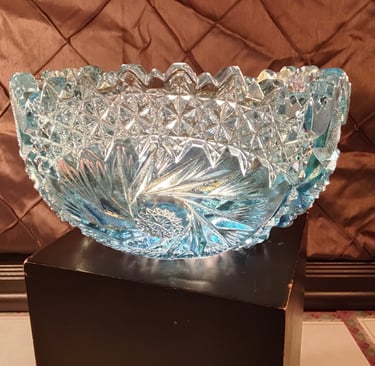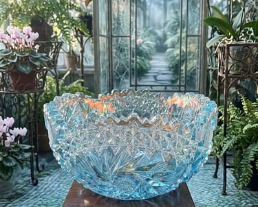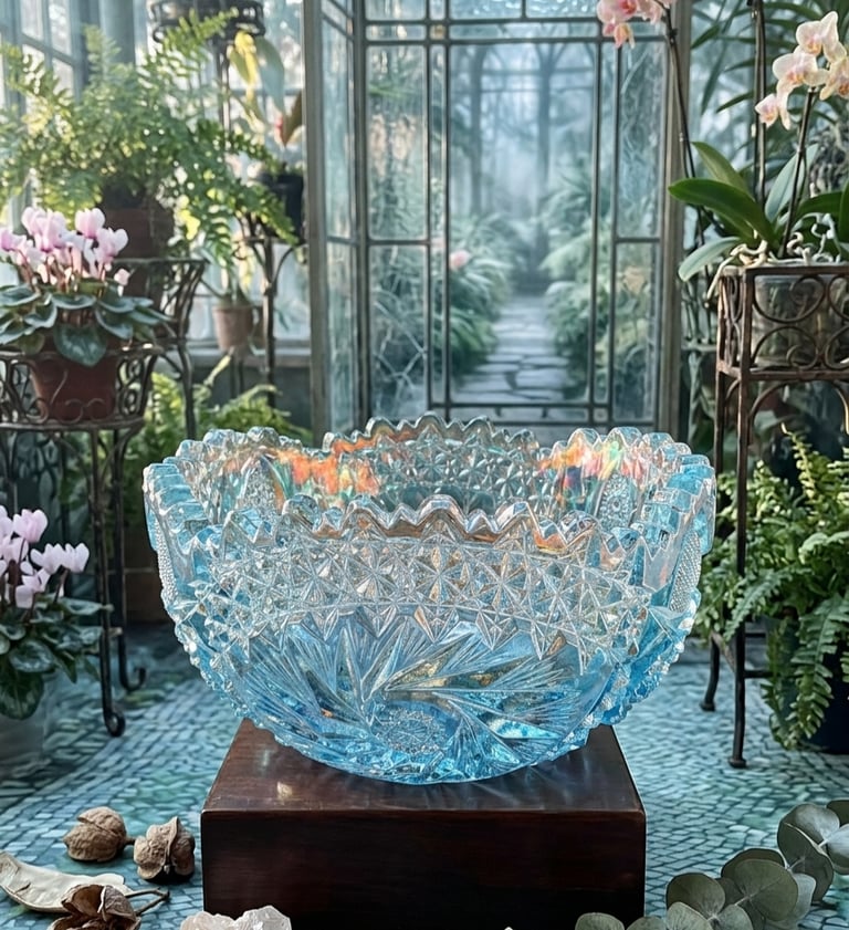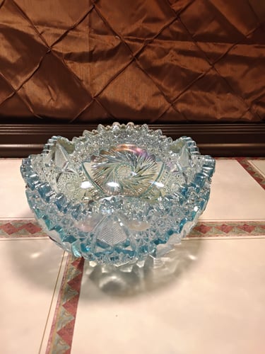Think "Carnival Glass" is just something from your great-grandmother’s dusty parlor? Think again. While the original craze hit in 1905, the 1960s and 70s saw a massive "Vintage Revival" that brought those psychedelic rainbows back into mid-century homes. The "Ice Blue" Aesthetic Unlike the deep marigolds and dark purples of the early 1900s, the 60s revival gave us Ice Blue. It’s cool, crisp, and looks like a frozen pond caught in a prism. Manufacturers like L.E. Smith (look for that famous "S" mark!) mastered the art of spraying metallic salts onto hot, pressed glass to create that signature oil-slick shimmer. Why It’s a Collector’s Secret Weapon These pieces were the "boho-chic" of their day. They aren't hand-cut crystal; they are pressed glass, molded with heavy geometric starbursts and fans that scream mid-century drama. Today, these revival pieces are the perfect entry point for new collectors. They offer all the shimmering, iridescent "wow factor" of an antique, but with the sturdy, chunky charm of the 1960s. Whether it’s a centerpiece or a shelf-stunner, Ice Blue Carnival Glass is proof that some trends are too bright to stay in the past.