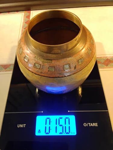 Weight is the leading qualifier of its authenticity. This Boho-Style Vase weighing fifteen ounces and the matching bowl weighs a whopping one pound!
